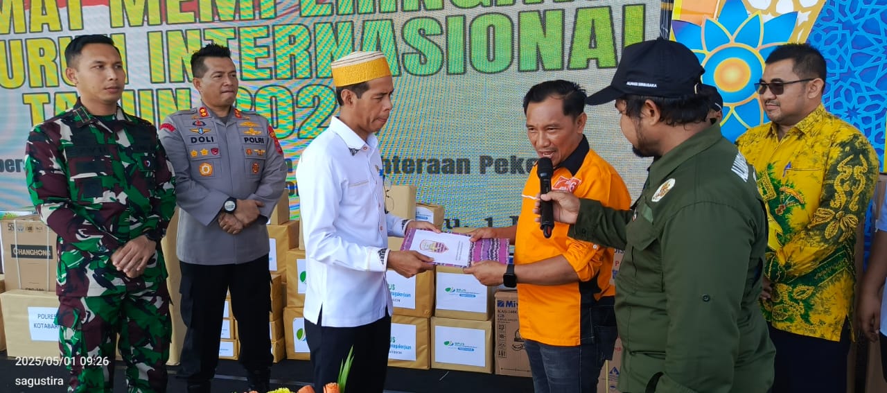Kotabaru, penanews.net _Kalimantan Selatan. Perwakilan DPRD Kabupaten Kotabaru dari komisi satu H. Hasanuddin hadiri May Day 2025, sekaligus terima 9 tuntutan Buruh Serbusaka, di Lapangan Siring Laut Kotabaru, Kamis (1/5/25).